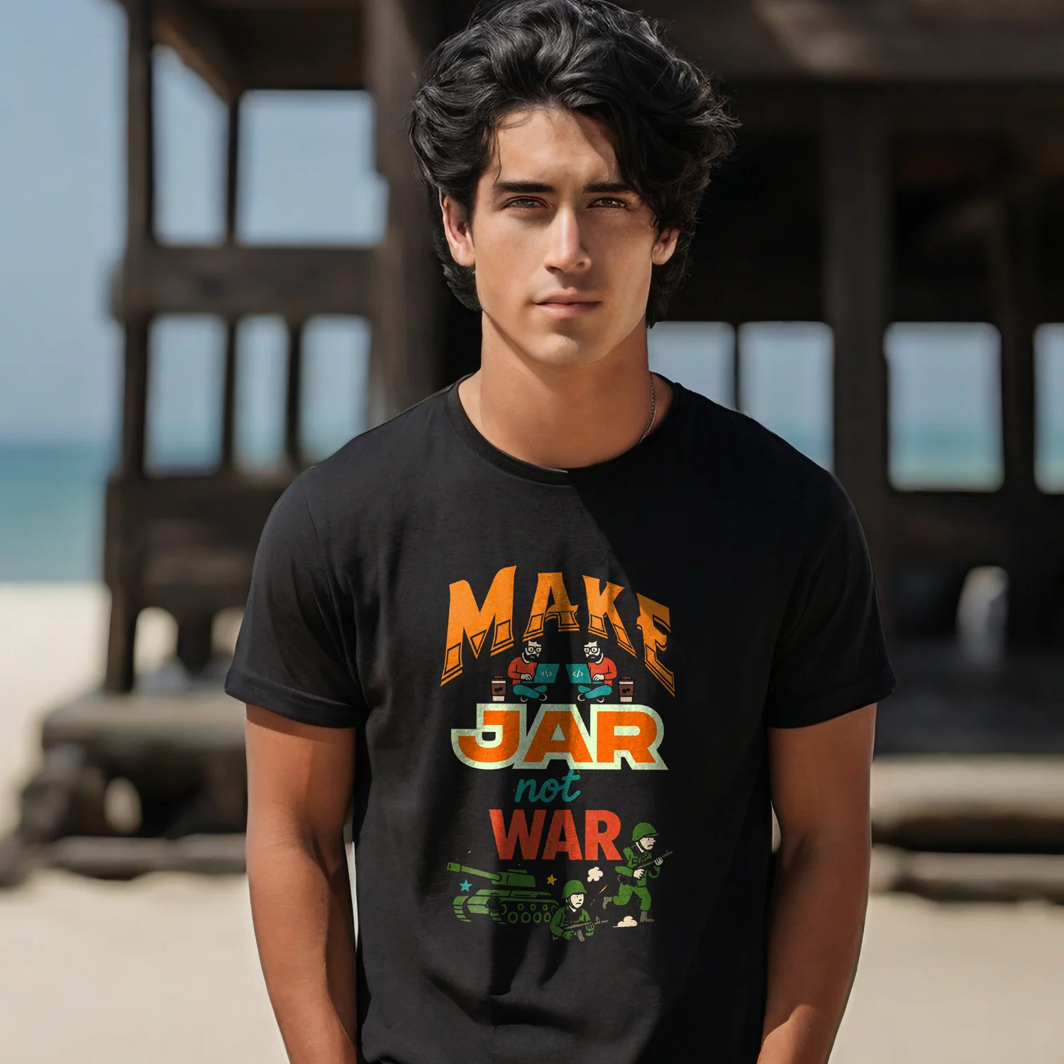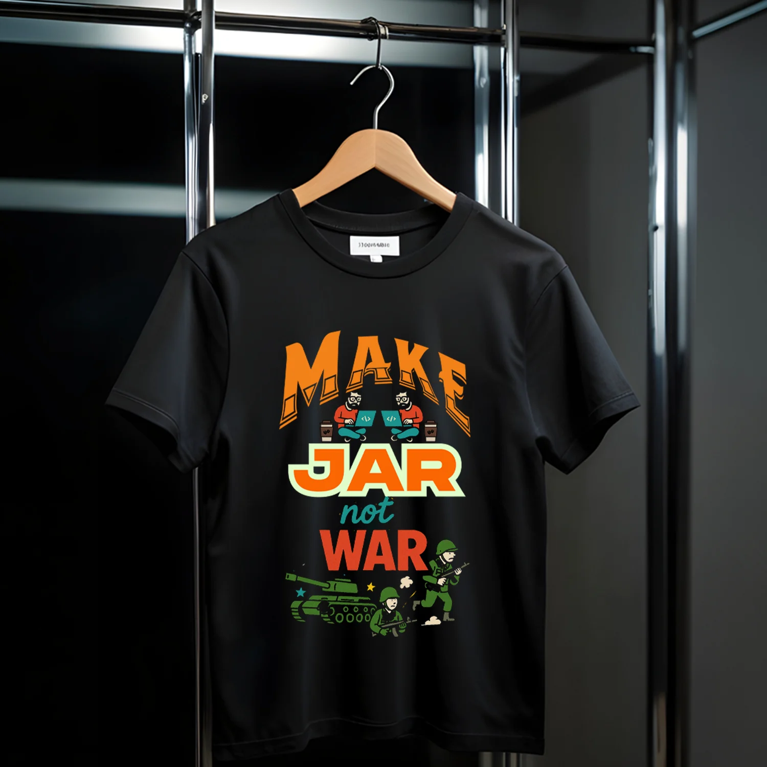 ‘Make Jar not WAR Black T-Shirt’ – Spread chutney, not conflict! This tee is your spicy statement.