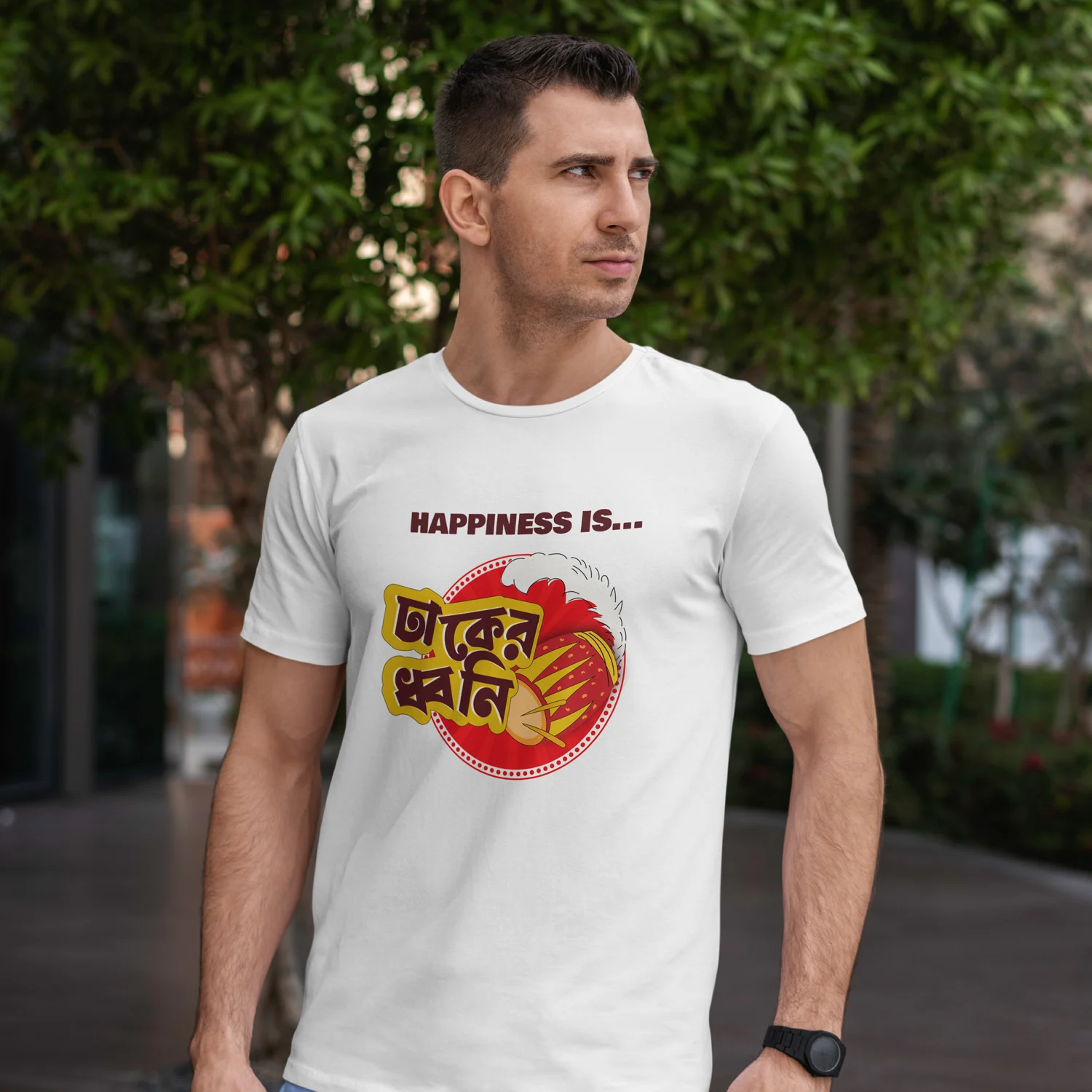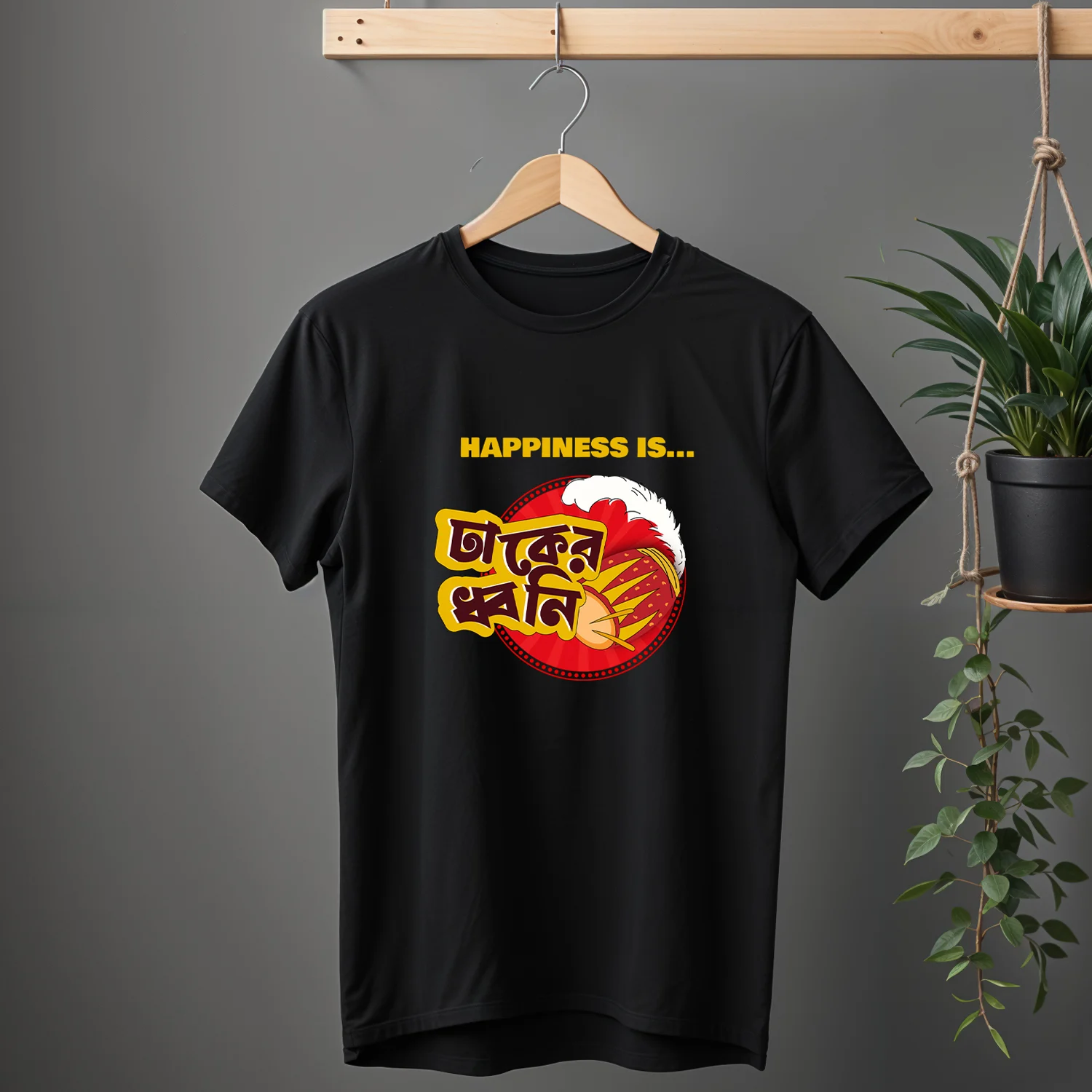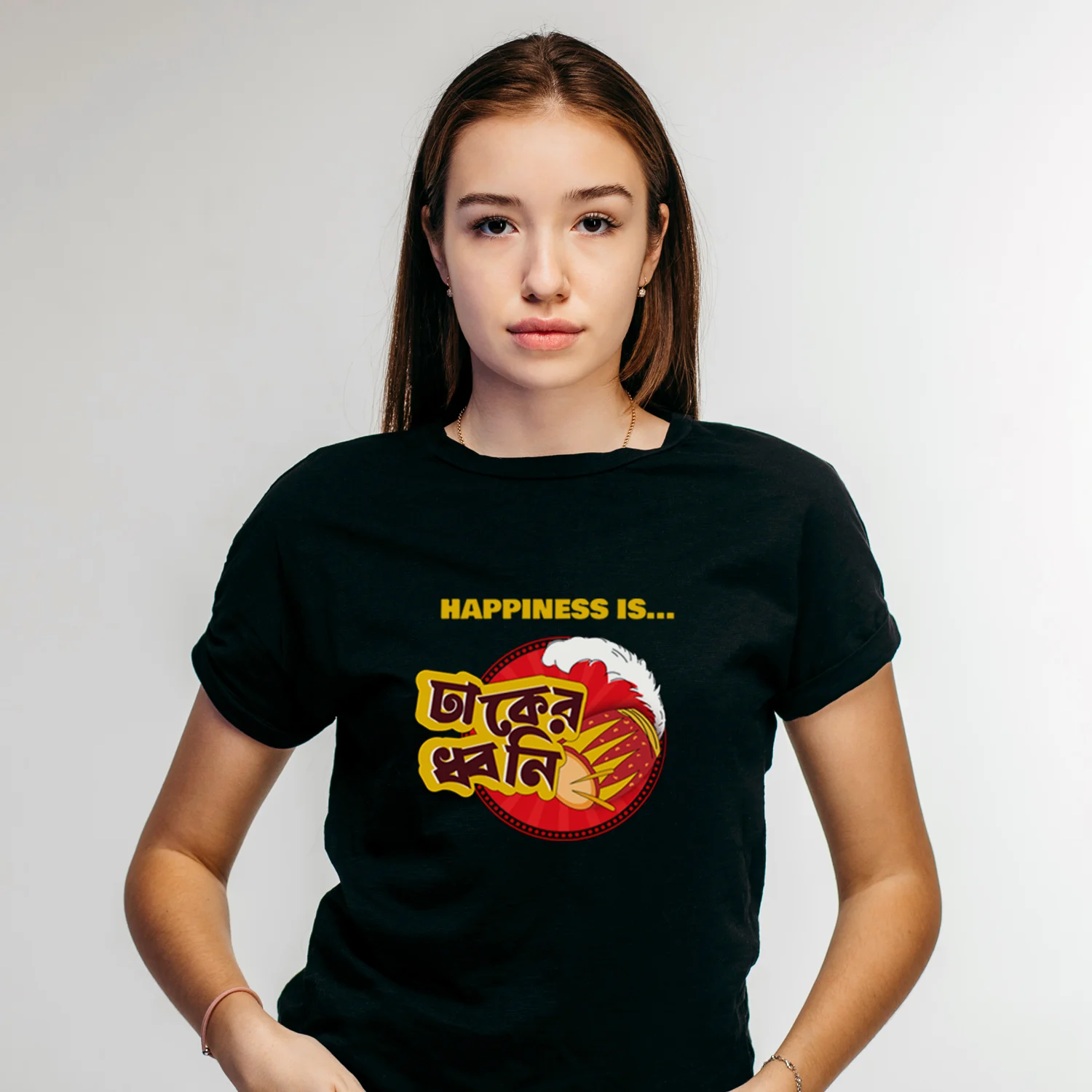 Nothing says Pujo like the thunderous rhythm of the dhaak. Our “Happiness is Dhaker Dhoni” T-shirt is a tribute to the sound that makes every Bengali heart race with festive joy. The deep beats, the rising energy, and the rush of Durga Puja mornings are all wrapped into this one powerful line. Made with soft, breathable cotton and designed for both comfort and culture, this tee is perfect for pandal hopping, adda sessions, or simply soaking in the spirit of the season. Wear the sound of celebration — because happiness truly is Dhaker Dhoni.
