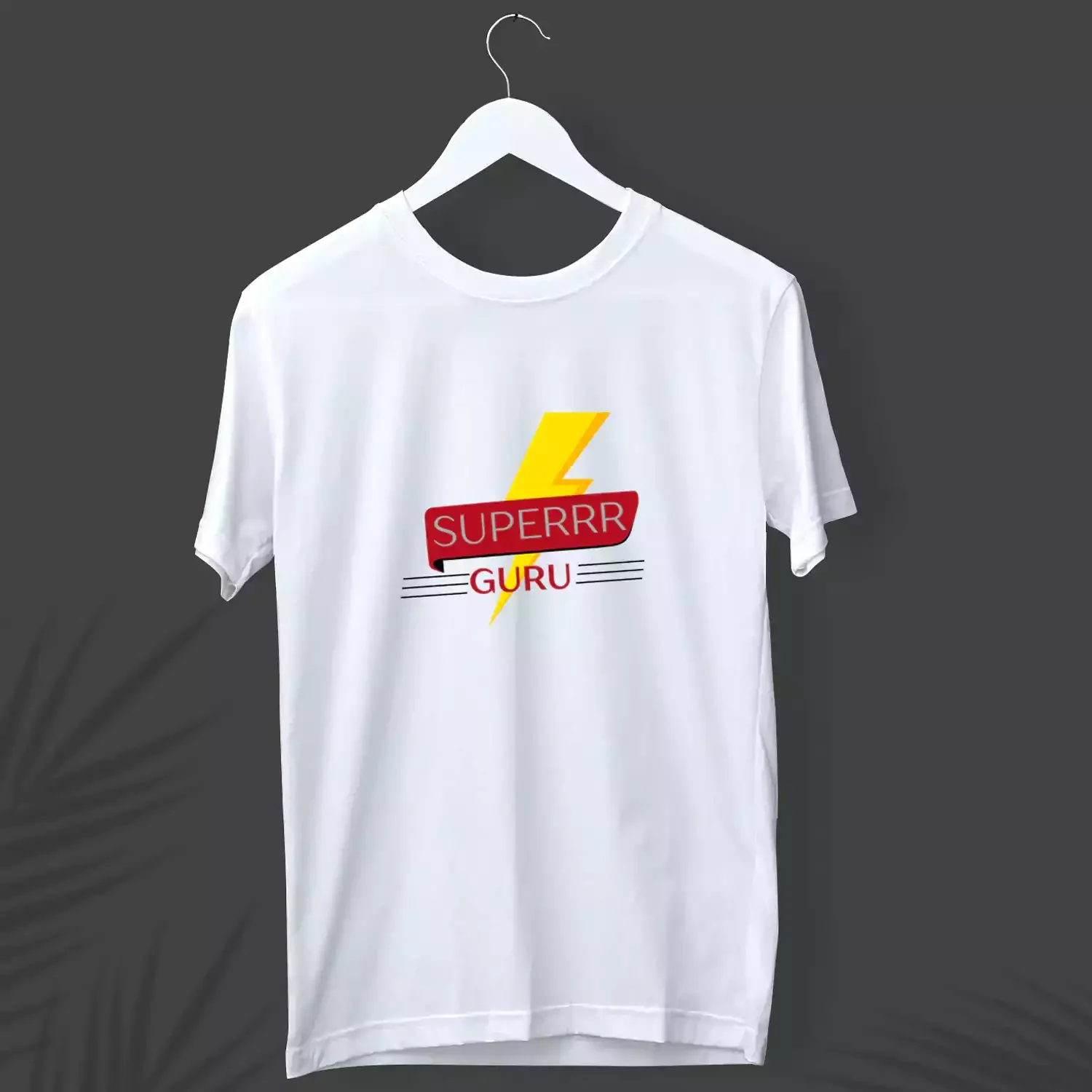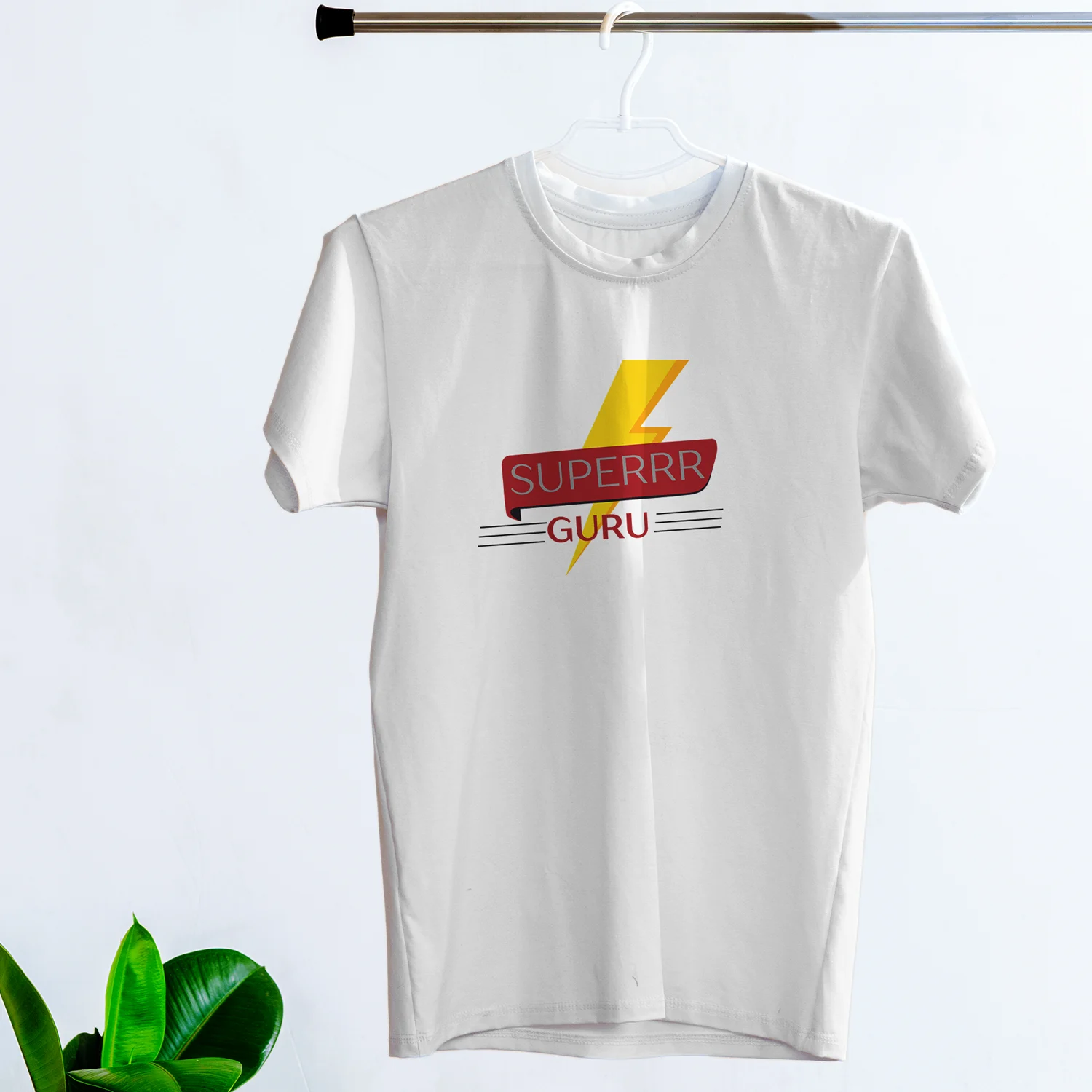 ‘Superrr Guru Printed White T-Shirt’ Unleash your inner guru! This tee levels up your swag, no wisdom required.