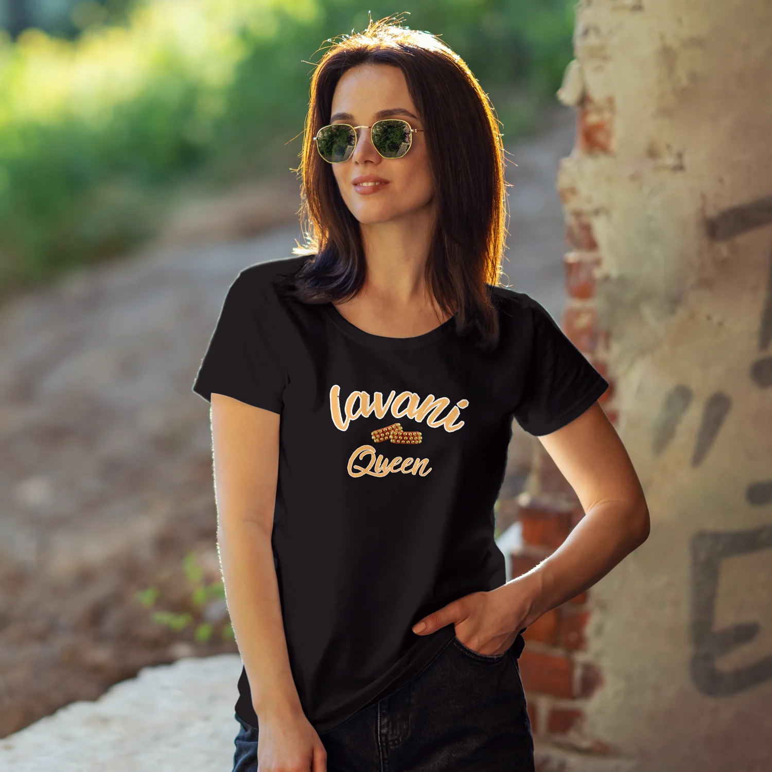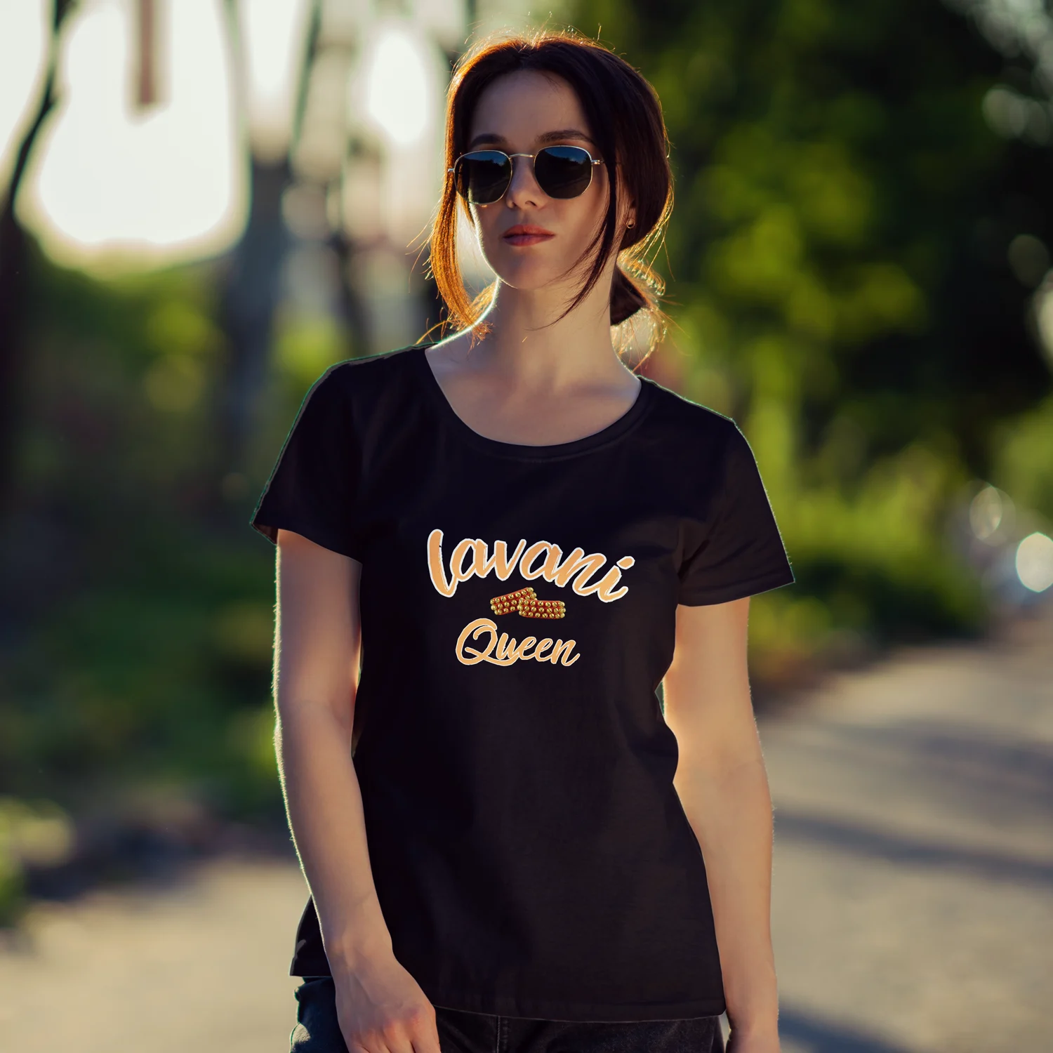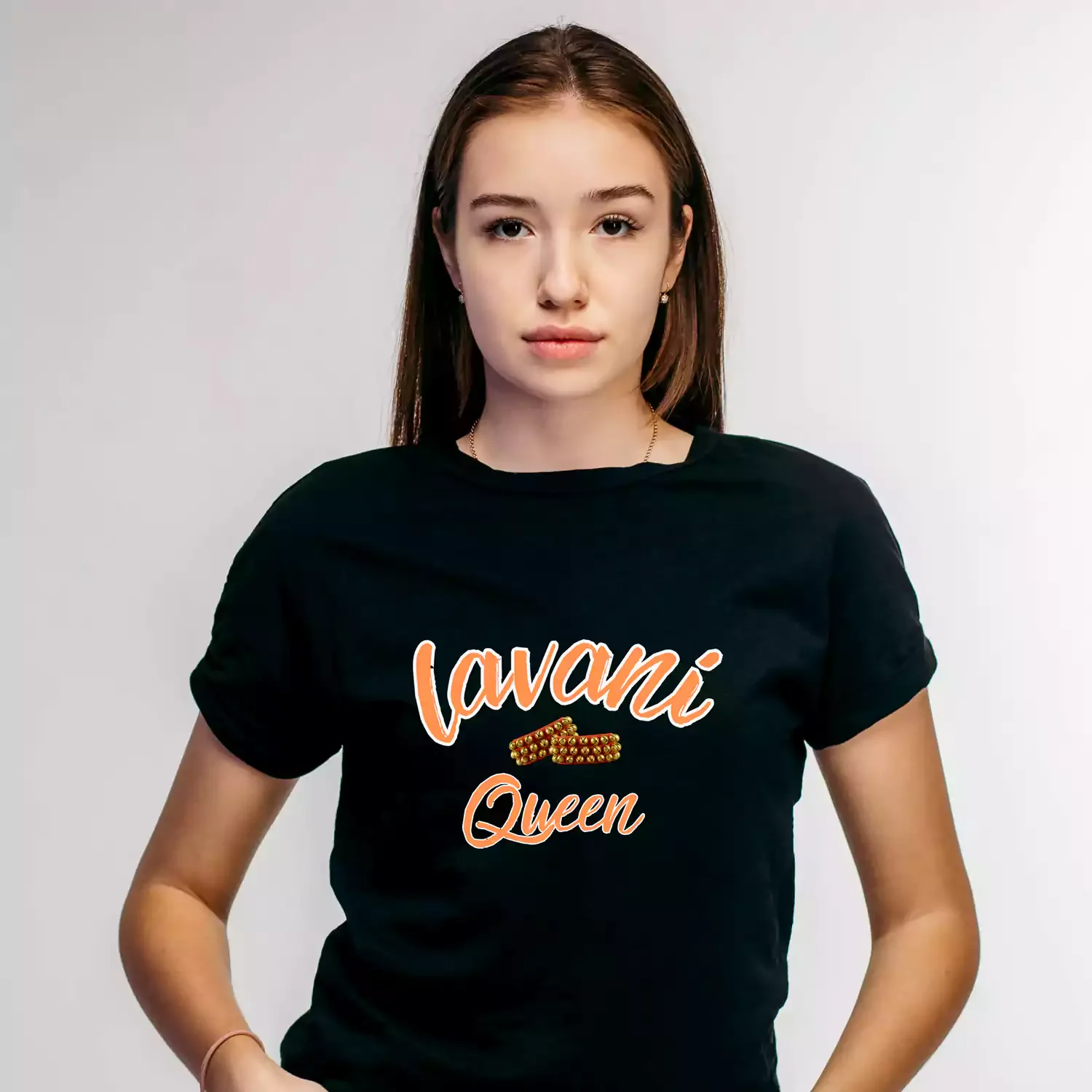 ‘Lavani Queen Printed T-Shirt’ – Rule the dance floor (or your couch!) in this regal tee.